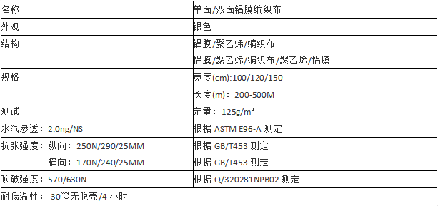 鍍鋁膜復(fù)合編織布(鋁膜編織布)是由鍍鋁膜和編織布經(jīng)過特殊工藝復(fù)合而成,從而繼承了這兩種材料的特點,鋁膜編織布有卓越的防潮、隔氧、防銹、遮光、屏蔽、抗靜電、抗撕裂、抗穿刺、抗擠壓性能,可抽真空,外觀亮澤,彩印效果佳。鋪設(shè)在屋面或墻體上,可以阻止建筑外的熱輻射向建筑內(nèi)擴散。